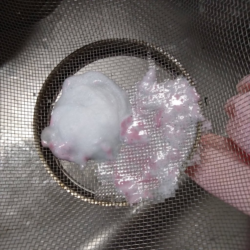 グミの様子がおかしかったのでざるを使ったところ、なんとグミが溶けました。このままでは実験できません。