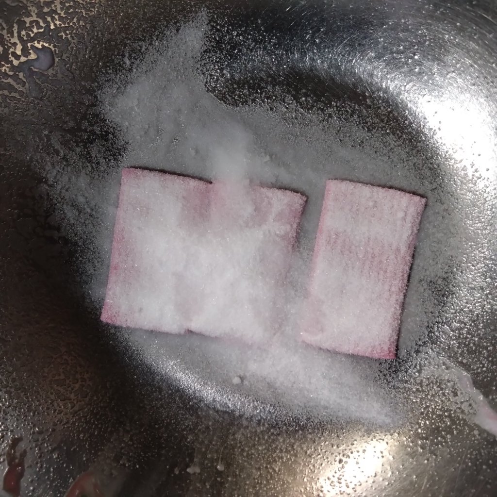 仕方ないので、グミに直接、重曹大さじ1をかけて一分待ちます。