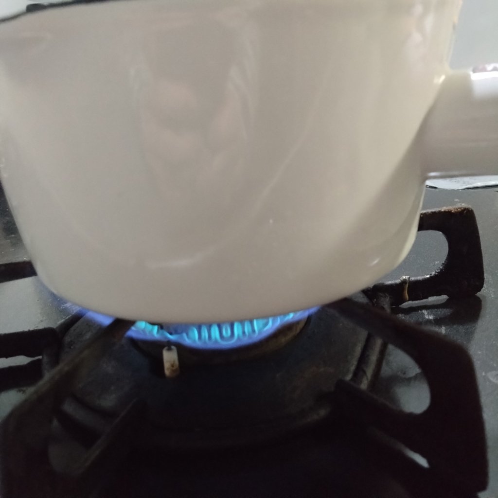 ① 鍋に牛乳を入れて中火で温めます。沸騰させてはいけません。
